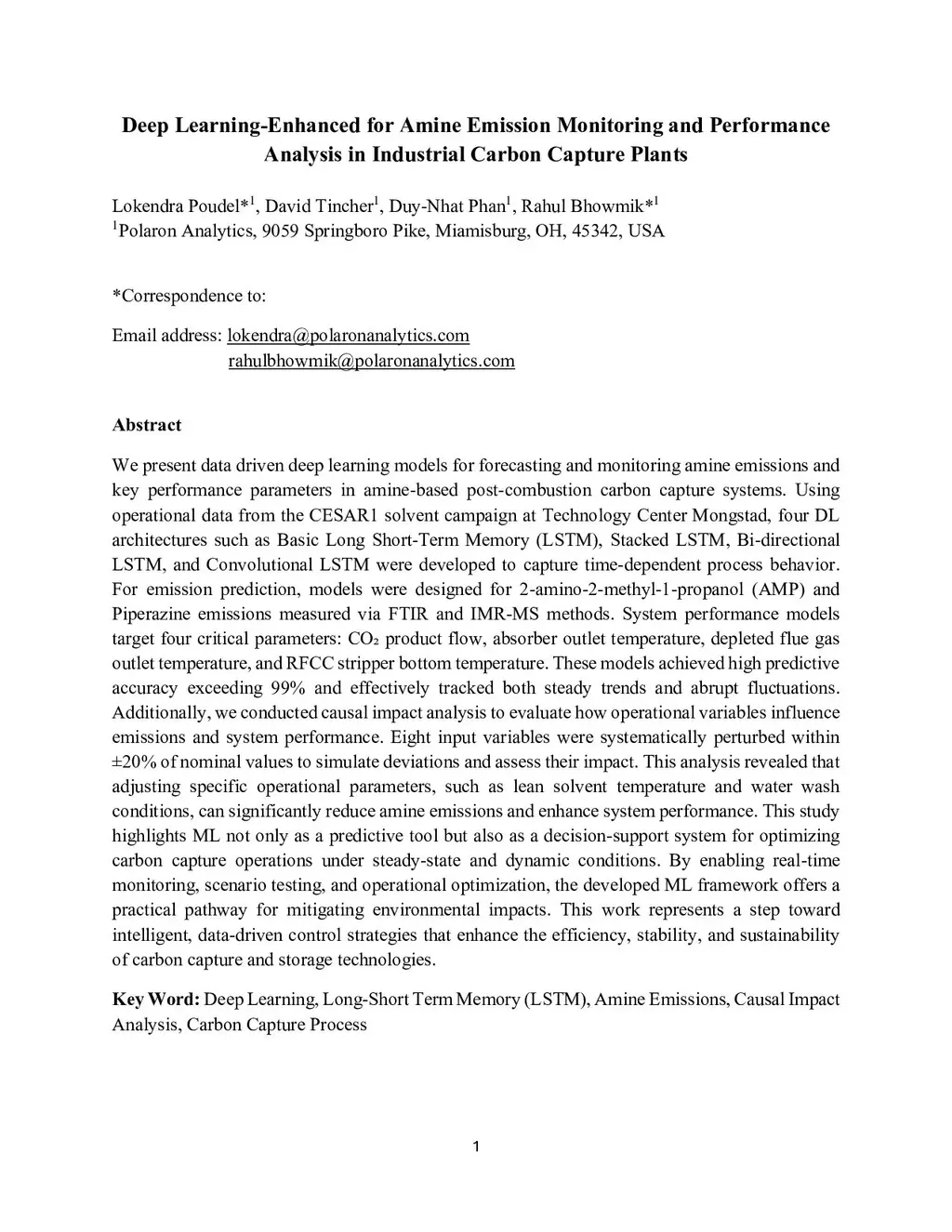 Deep Learning-Enhanced for Amine Emission Monitoring and Performance Analysis in Industrial Carbon Capture Plants