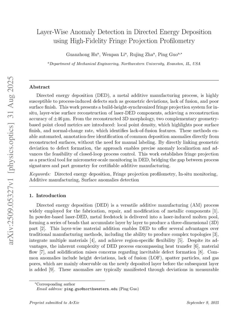 Layer-Wise Anomaly Detection in Directed Energy Deposition using High-Fidelity Fringe Projection Profilometry
