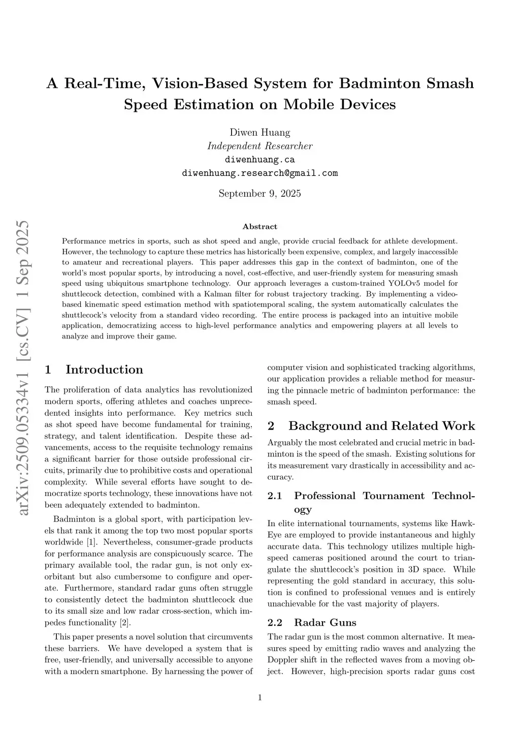 Performance metrics in sports, such as shot speed and angle, provide crucial feedback for athlete development. However, the technology to capture these metrics has historically been expensive, complex, and largely inaccessible to amateur and recreational players. This paper addresses this gap in the context of badminton, one of the world's most popular sports, by introducing a novel, cost-effective, and user-friendly system for measuring smash speed using ubiquitous smartphone technology. Our approach leverages a custom-trained YOLOv5 model for shuttlecock detection, combined with a Kalman filter for robust trajectory tracking. By implementing a video-based kinematic speed estimation method with spatiotemporal scaling, the system automatically calculates the shuttlecock's velocity from a standard video recording. The entire process is packaged into an intuitive mobile application, democratizing access to high-level performance analytics and empowering players at all levels to analyze and improve their game.