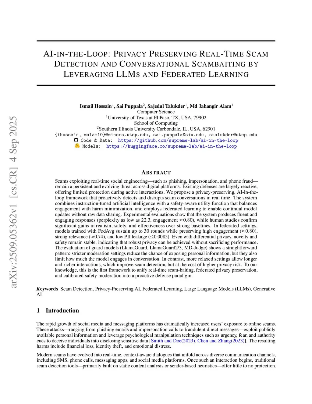 AI-in-the-Loop: Privacy Preserving Real-Time Scam Detection and Conversational Scambaiting by Leveraging LLMs and Federated Learning