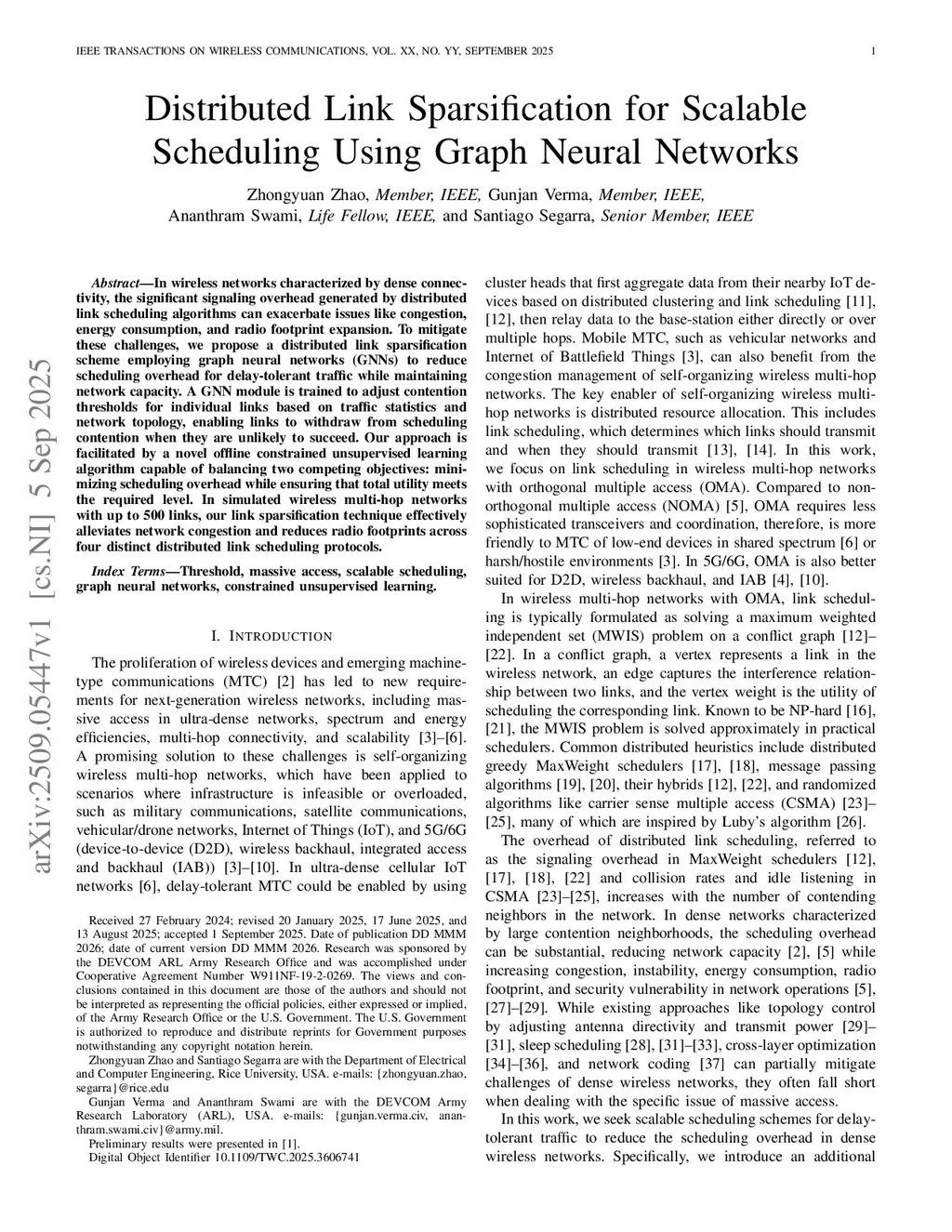 Distributed Link Sparsification for Scalable Scheduling Using Graph Neural Networks (Journal Version)
