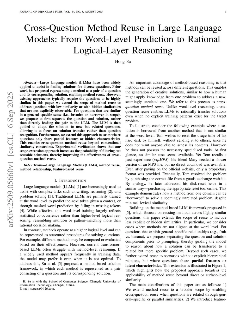 Cross-Question Method Reuse in Large Language Models: From Word-Level Prediction to Rational Logical-Layer Reasoning