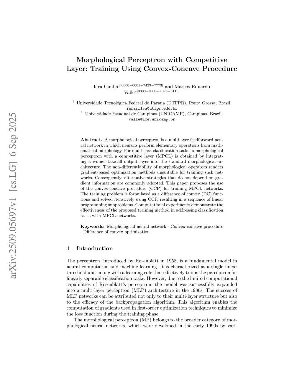 Morphological Perceptron with Competitive Layer: Training Using Convex-Concave Procedure
