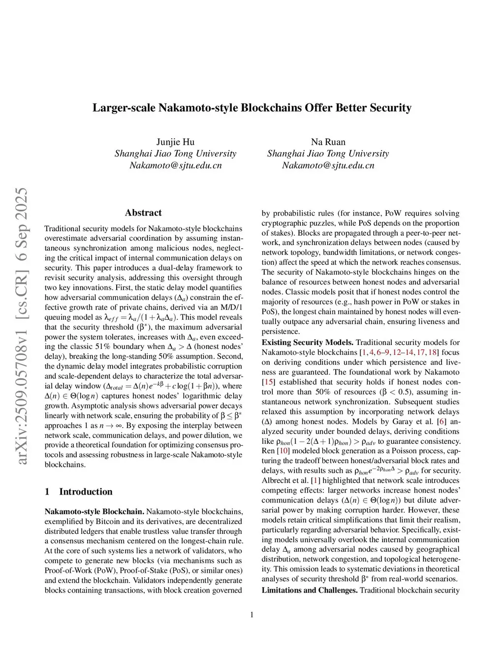 Traditional security models for Nakamoto-style blockchains assume instantaneous synchronization among malicious nodes, which overestimate adversarial coordination capability. We revisit these existing models and propose two more realistic security models. First, we propose the static delay model. This model first incorporates adversarial communication delay. It quantifies how the delay constrains the effective growth rate of private chains and yields a closed-form expression for the security threshold. Second, we propose the dynamic delay model that further captures the decay of adversarial corruption capability and the total adversarial delay window. Theoretical analysis shows that private attacks remain optimal under both models. Finally, we prove that large-scale Nakamoto-style blockchains offer better security. This result provided a theoretical foundation for optimizing consensus protocols and assessing the robustness of large-scale blockchains.