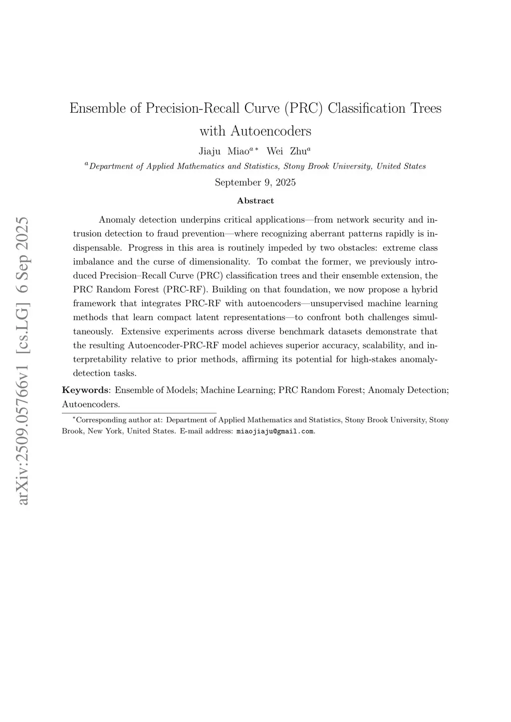 Ensemble of Precision-Recall Curve (PRC) Classification Trees with Autoencoders