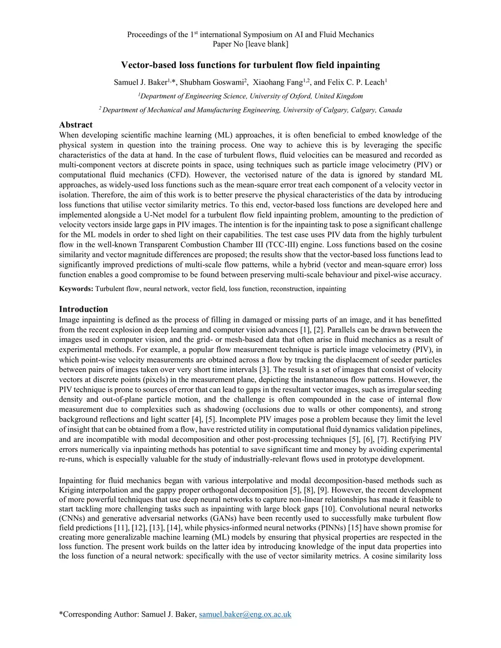 Vector-based loss functions for turbulent flow field inpainting