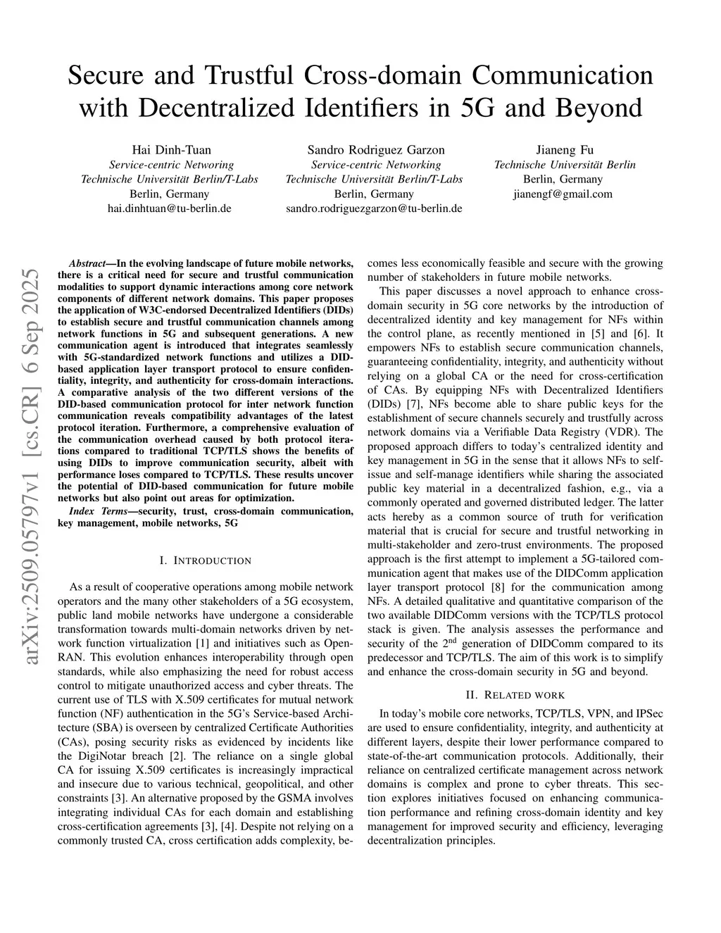 Secure and Trustful Cross-domain Communication with Decentralized Identifiers in 5G and Beyond