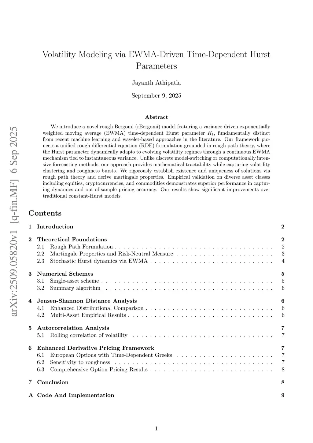 We introduce a novel rough Bergomi (rBergomi) model featuring a variance-driven exponentially weighted moving average (EWMA) time-dependent Hurst parameter , fundamentally distinct from recent machine learning and wavelet-based approaches in the literature. Our framework pioneers a unified rough differential equation (RDE) formulation grounded in rough path theory, where the Hurst parameter dynamically adapts to evolving volatility regimes through a continuous EWMA mechanism tied to instantaneous variance. Unlike discrete model-switching or computationally intensive forecasting methods, our approach provides mathematical tractability while capturing volatility clustering and roughness bursts. We rigorously establish existence and uniqueness of solutions via rough path theory and derive martingale properties. Empirical validation on diverse asset classes including equities, cryptocurrencies, and commodities demonstrates superior performance in capturing dynamics and out-of-sample pricing accuracy. Our results show significant improvements over traditional constant-Hurst models.