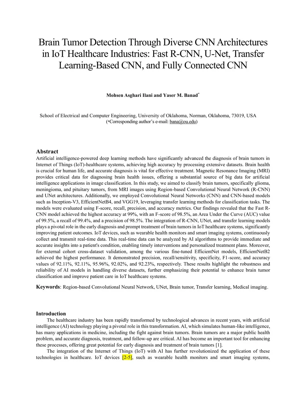Brain Tumor Detection Through Diverse CNN Architectures in IoT Healthcare Industries: Fast R-CNN, U-Net, Transfer Learning-Based CNN, and Fully Connected CNN