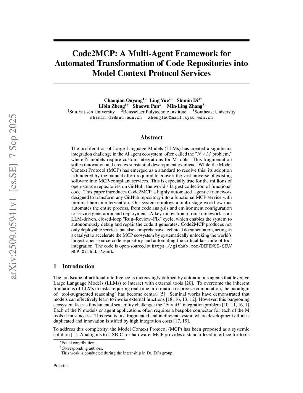 The Model Context Protocol (MCP) aims to create a standard for how Large Language Models use tools. However, most current research focuses on selecting tools from an existing pool. A more fundamental, yet largely overlooked, problem is how to populate this pool by converting the vast number of existing software projects into MCP-compatible services. To bridge this gap, we introduce Code2MCP, an agent-based framework that automatically transforms a GitHub repository into a functional MCP service with minimal human intervention. Code2MCP employs a multi-agent workflow for code analysis, environment setup, tool function design, and service generation, enhanced by a self-correcting loop to ensure reliability. We demonstrate that Code2MCP successfully transforms open-source computing libraries in scientific fields such as bioinformatics, mathematics, and fluid dynamics that are not available in existing MCP servers. By providing a novel automated pathway to unlock GitHub, the world's largest code repository, for the MCP ecosystem, Code2MCP serves as a catalyst to significantly accelerate the protocol's adoption and practical application. The code is public atthis https URL.