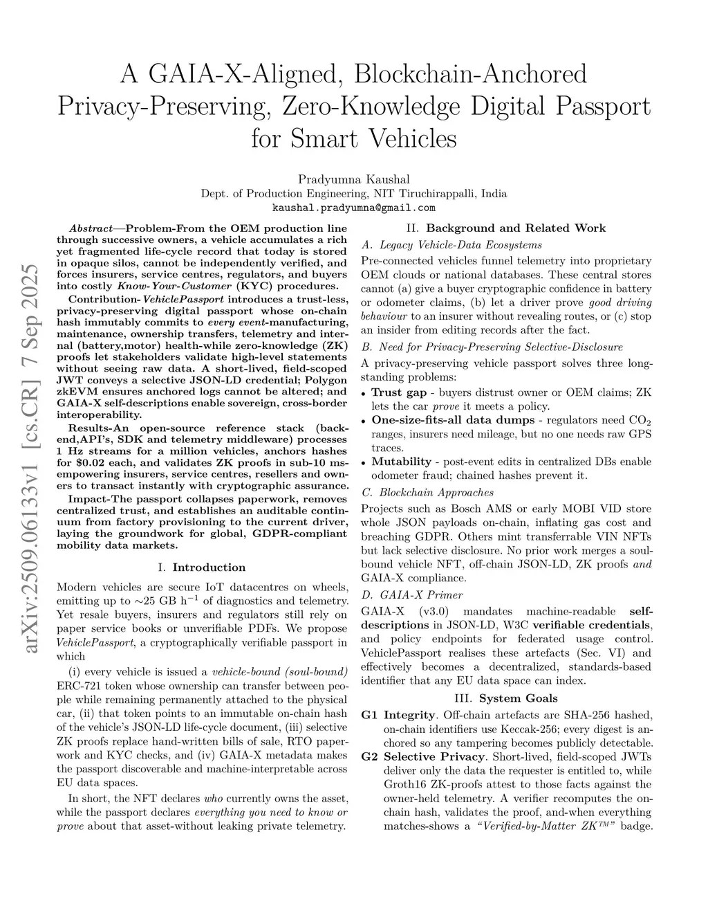 VehiclePassport: A GAIA-X-Aligned, Blockchain-Anchored Privacy-Preserving, Zero-Knowledge Digital Passport for Smart Vehicles