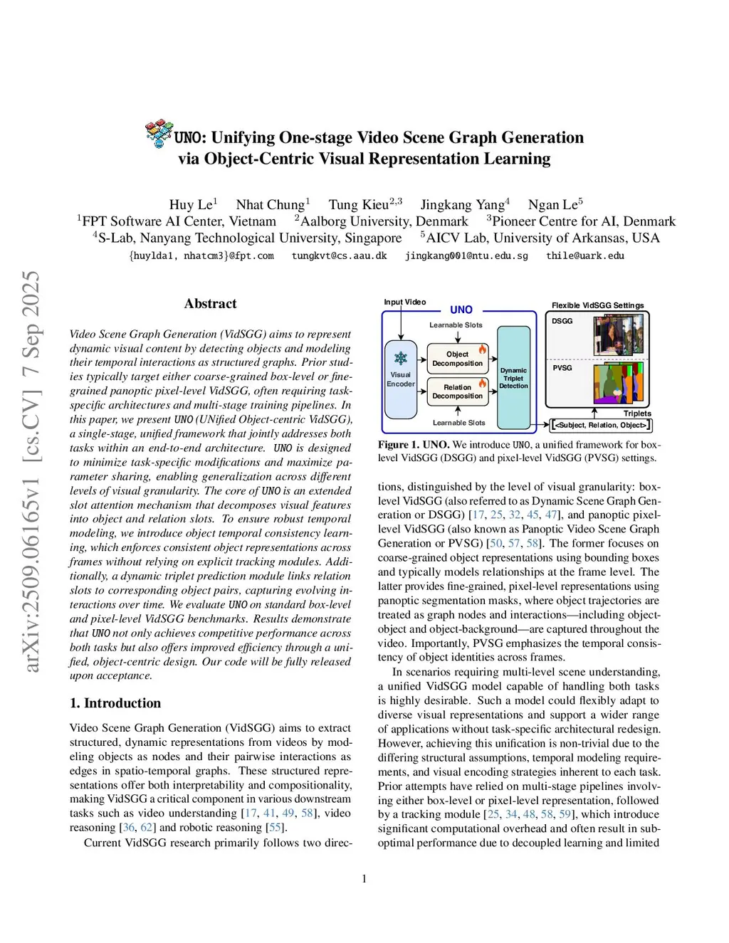UNO: Unifying One-stage Video Scene Graph Generation via Object-Centric Visual Representation Learning