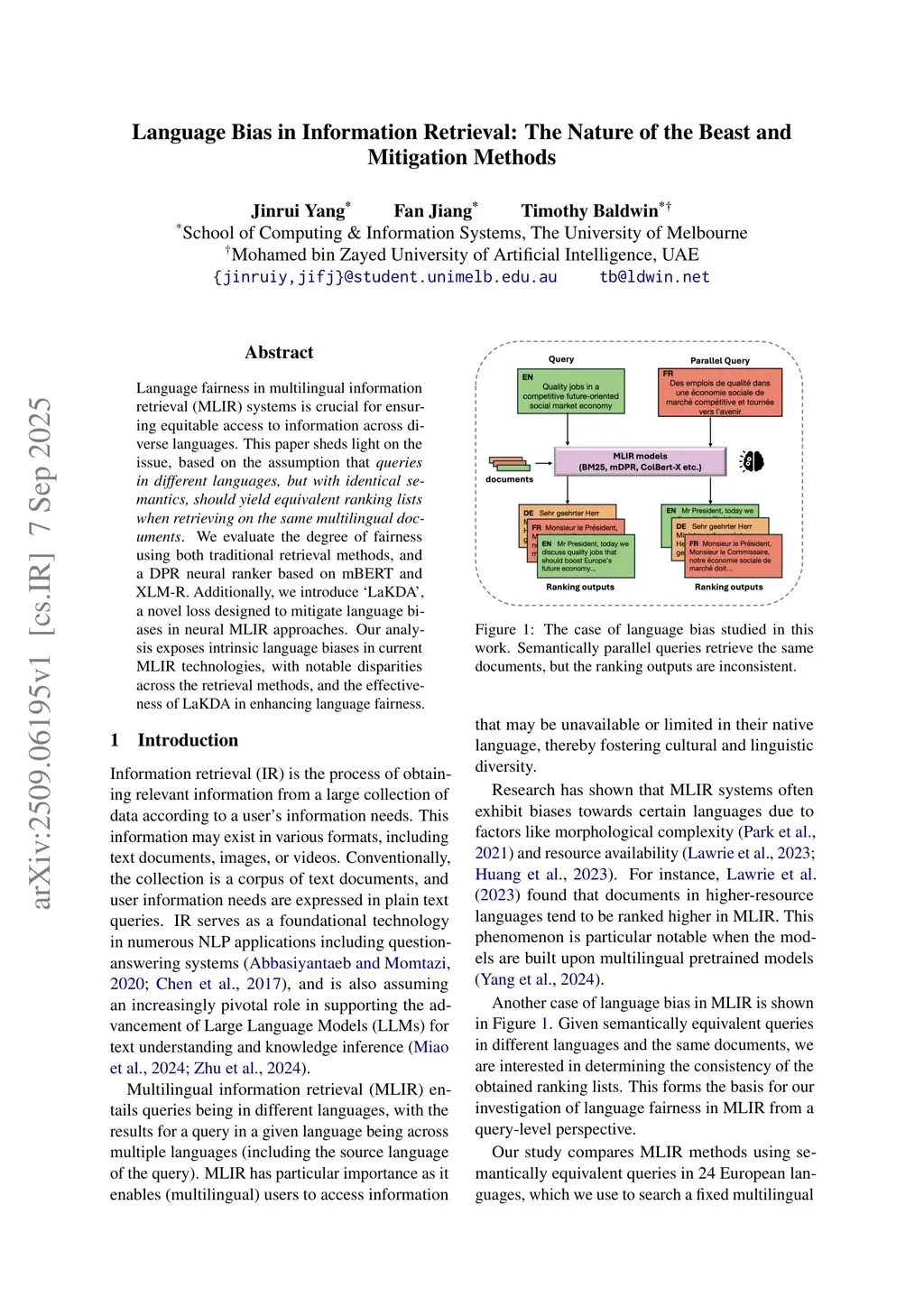 Language Bias in Information Retrieval: The Nature of the Beast and Mitigation Methods