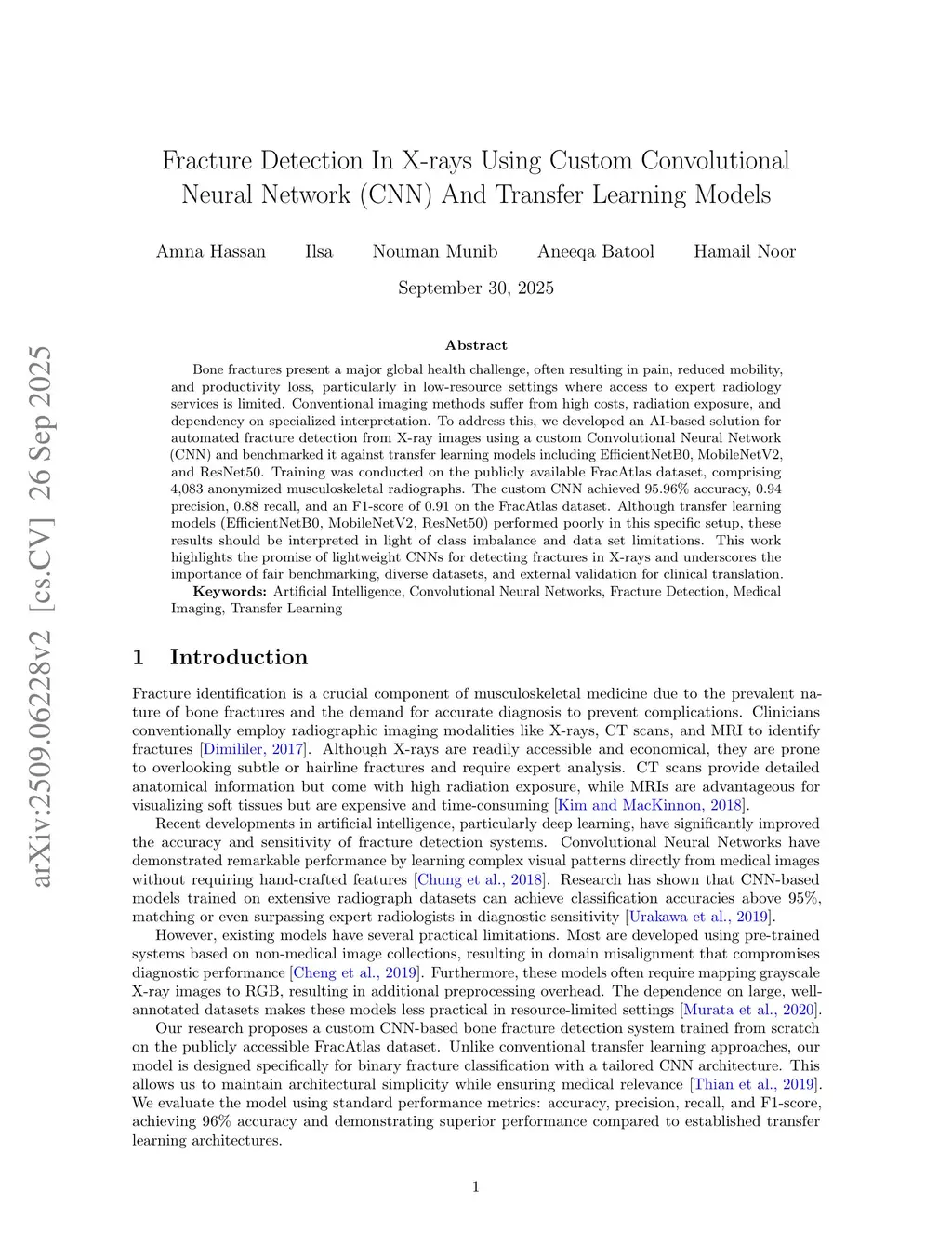 Fracture Detection In X-rays Using Custom Convolutional Neural Network (CNN) And Transfer Learning Models