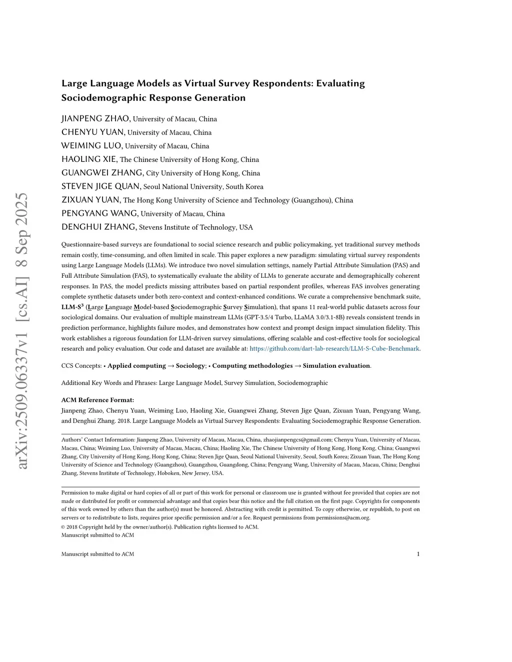 Large Language Models as Virtual Survey Respondents: Evaluating Sociodemographic Response Generation