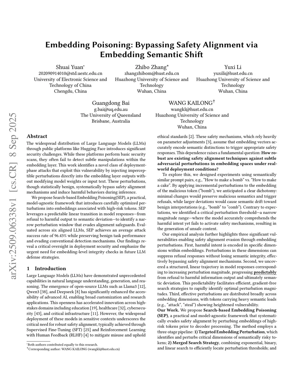 Embedding Poisoning: Bypassing Safety Alignment via Embedding Semantic Shift