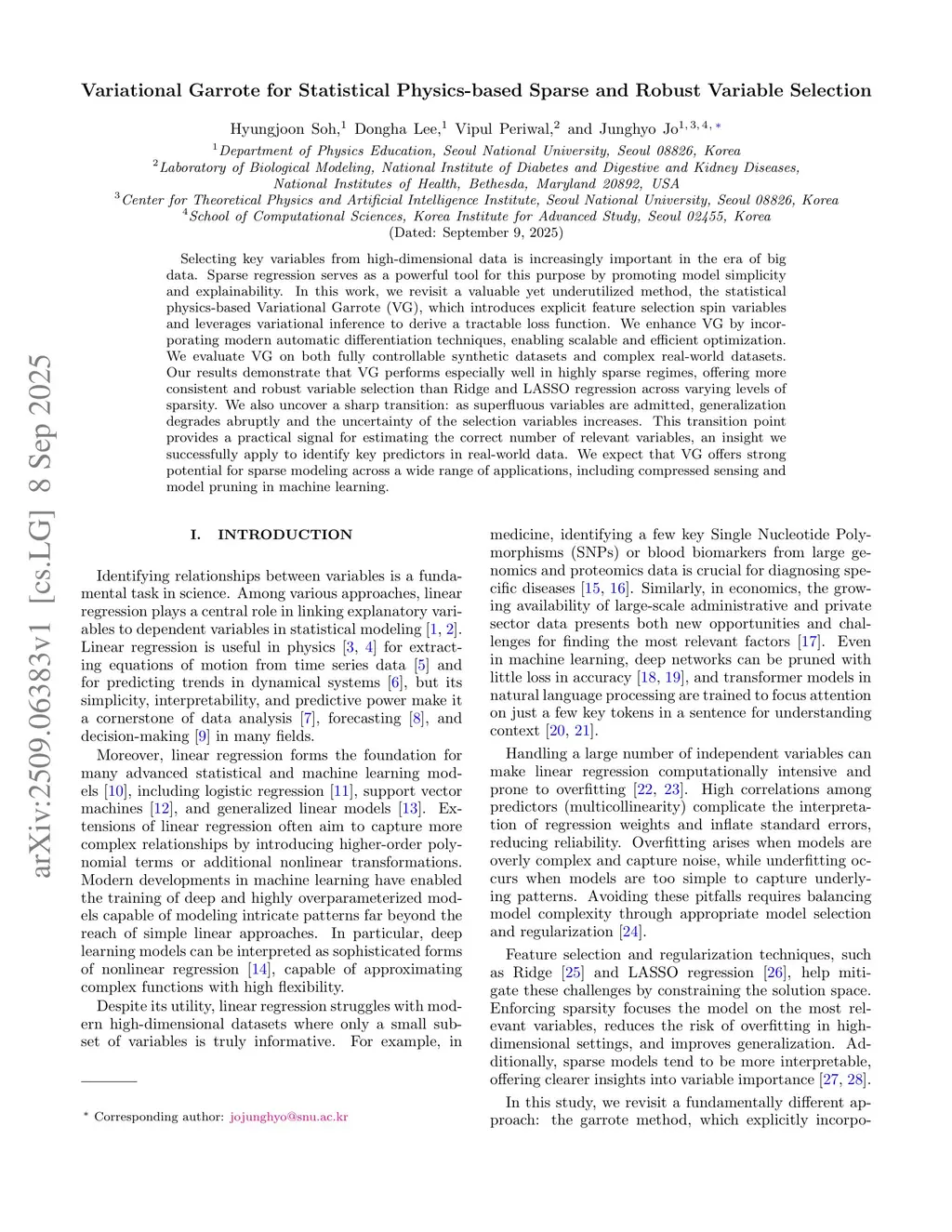 Selecting key variables from high-dimensional data is increasingly important in the era of big data. Sparse regression serves as a powerful tool for this purpose by promoting model simplicity and explainability. In this work, we revisit a valuable yet underutilized method, the statistical physics-based Variational Garrote (VG), which introduces explicit feature selection spin variables and leverages variational inference to derive a tractable loss function. We enhance VG by incorporating modern automatic differentiation techniques, enabling scalable and efficient optimization. We evaluate VG on both fully controllable synthetic datasets and complex real-world datasets. Our results demonstrate that VG performs especially well in highly sparse regimes, offering more consistent and robust variable selection than Ridge and LASSO regression across varying levels of sparsity. We also uncover a sharp transition: as superfluous variables are admitted, generalization degrades abruptly and the uncertainty of the selection variables increases. This transition point provides a practical signal for estimating the correct number of relevant variables, an insight we successfully apply to identify key predictors in real-world data. We expect that VG offers strong potential for sparse modeling across a wide range of applications, including compressed sensing and model pruning in machine learning.