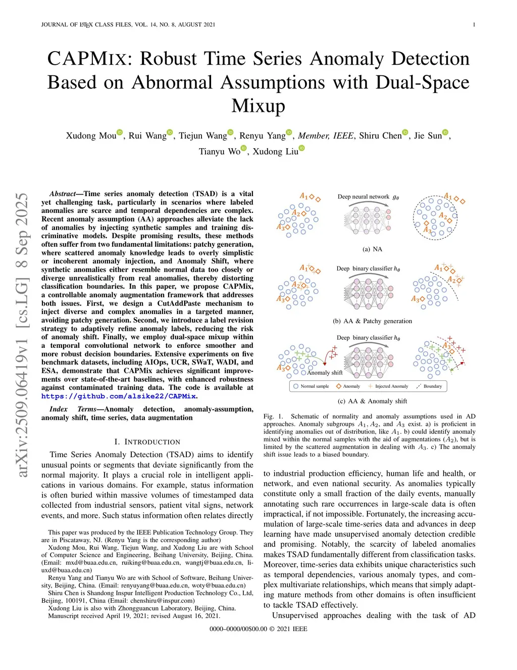 CAPMix: Robust Time Series Anomaly Detection Based on Abnormal Assumptions with Dual-Space Mixup