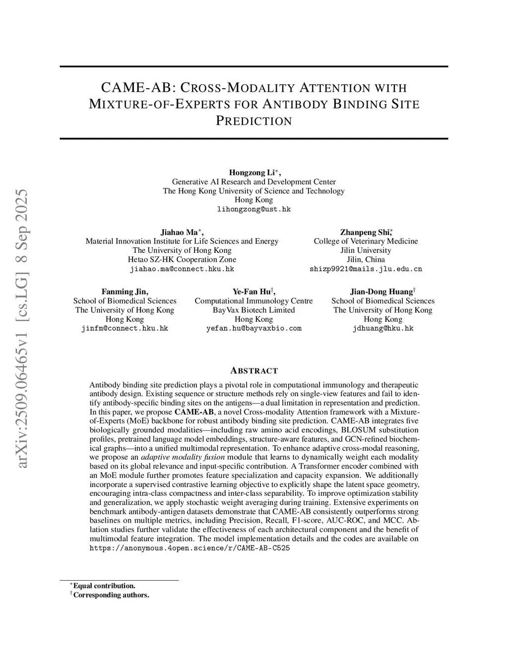 CAME-AB: Cross-Modality Attention with Mixture-of-Experts for Antibody Binding Site Prediction