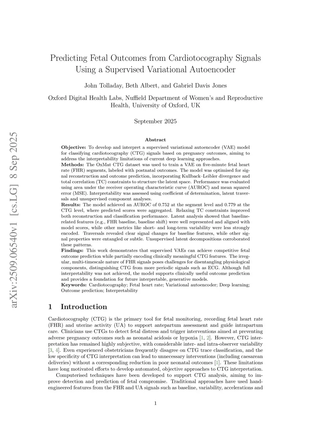 Predicting Fetal Outcomes from Cardiotocography Signals Using a Supervised Variational Autoencoder