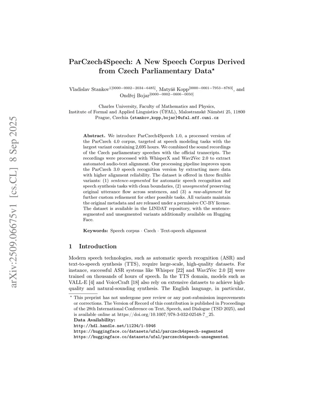 ParCzech4Speech: A New Speech Corpus Derived from Czech Parliamentary Data