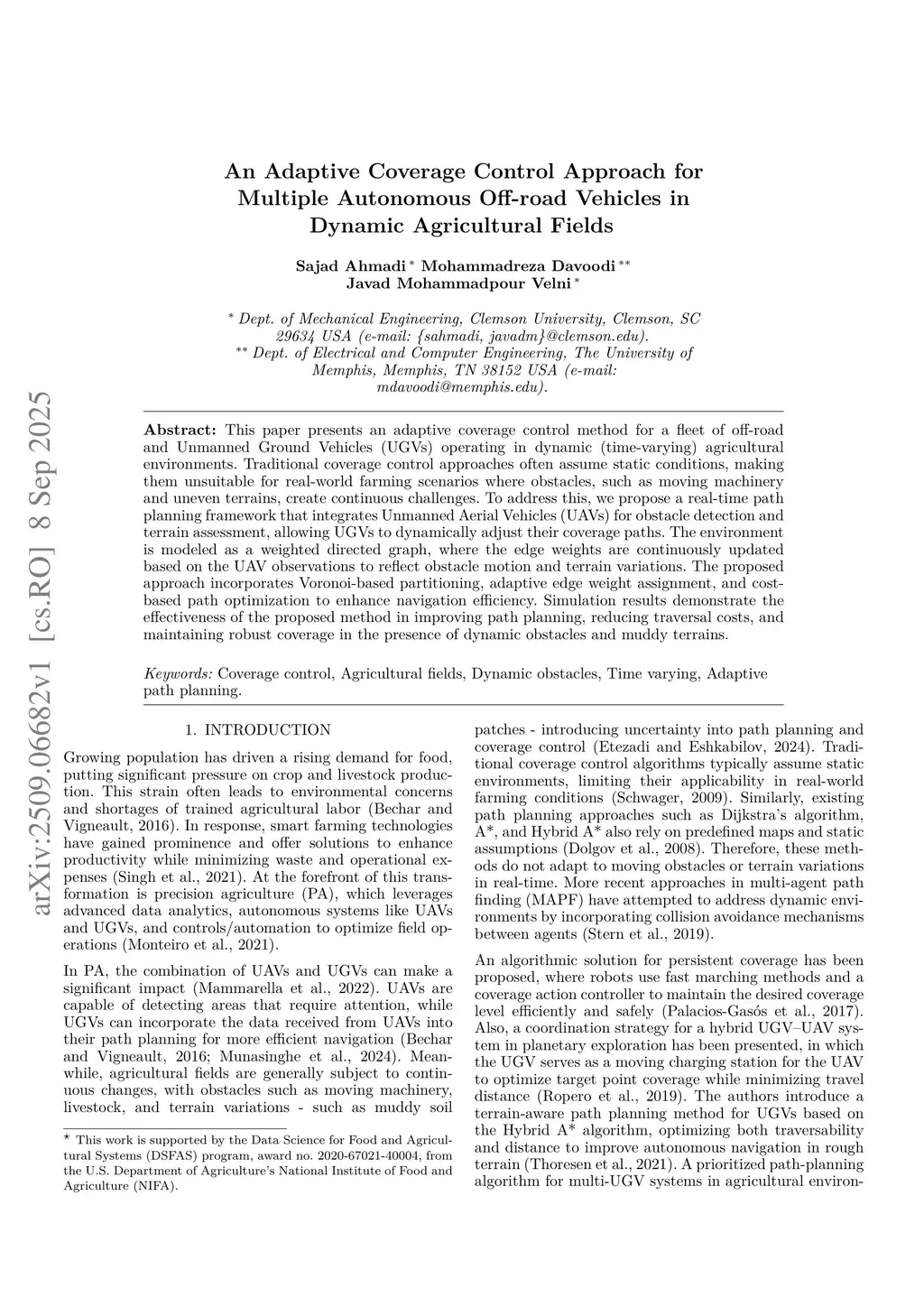 An Adaptive Coverage Control Approach for Multiple Autonomous Off-road Vehicles in Dynamic Agricultural Fields