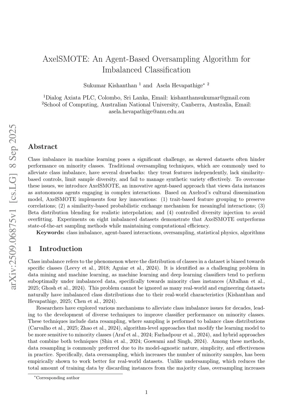 AxelSMOTE: An Agent-Based Oversampling Algorithm for Imbalanced Classification