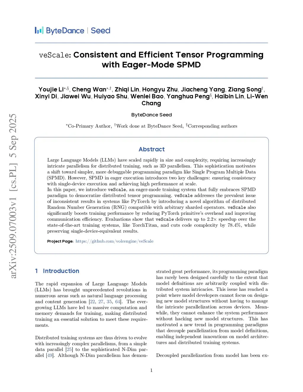 veScale: Consistent and Efficient Tensor Programming with Eager-Mode SPMD