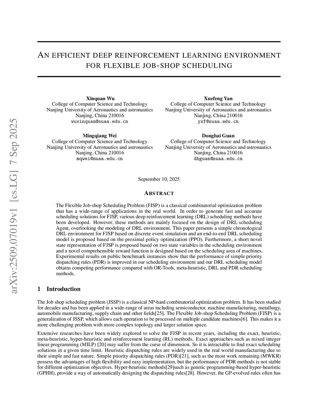 An efficient deep reinforcement learning environment for flexible job-shop scheduling