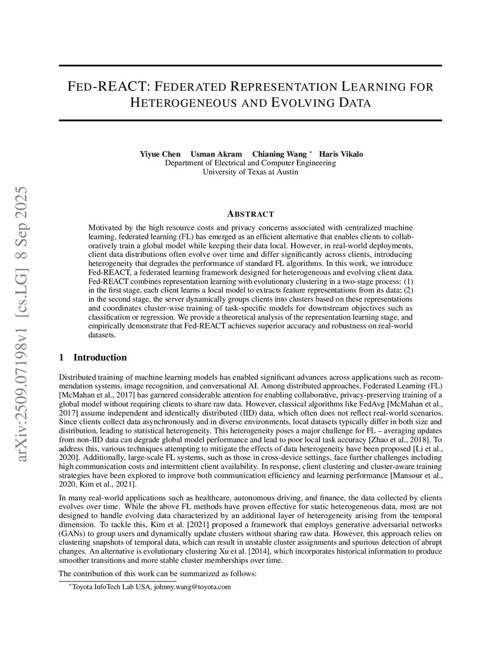 Fed-REACT: Federated Representation Learning for Heterogeneous and Evolving Data