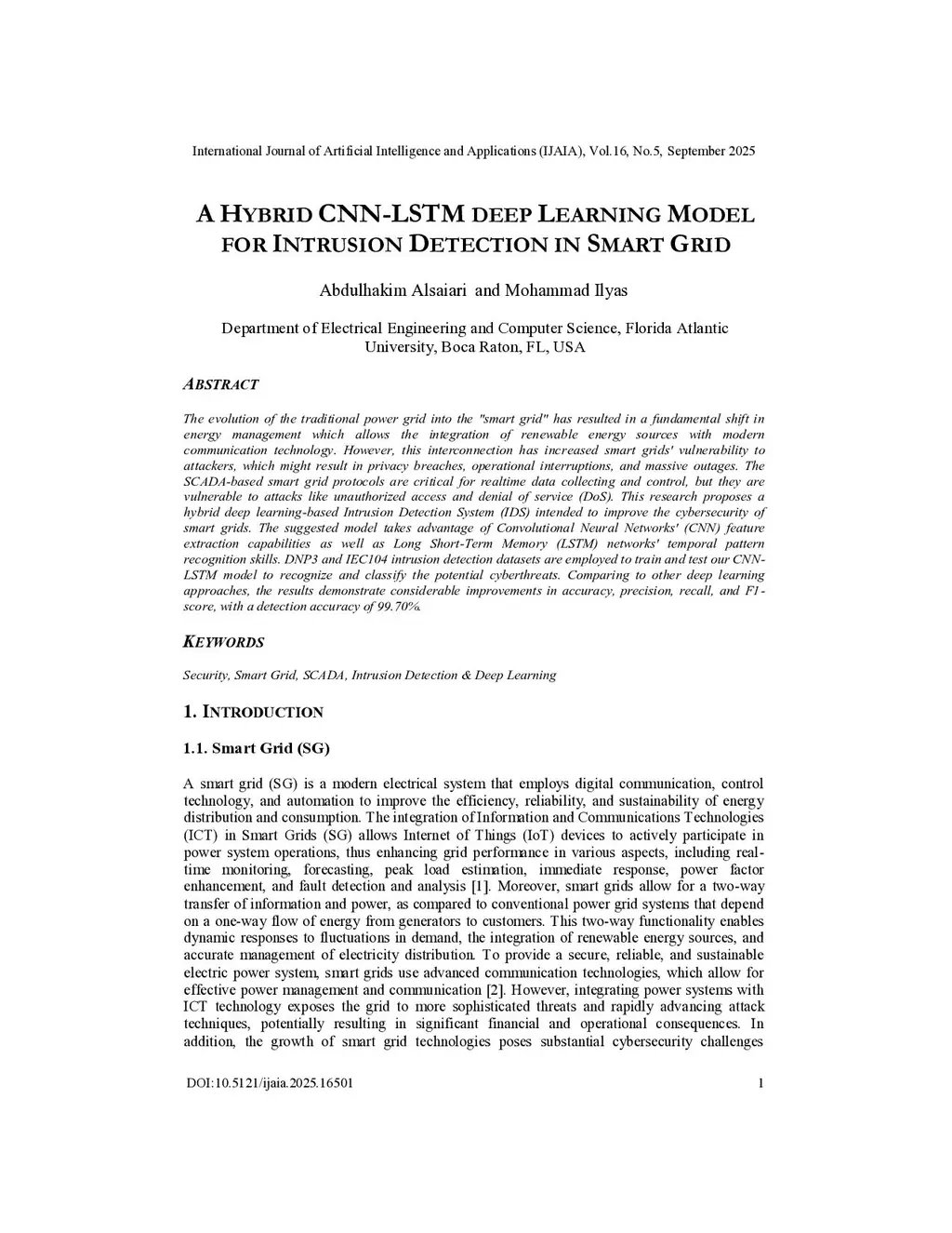 A Hybrid CNN-LSTM Deep Learning Model for Intrusion Detection in Smart Grid