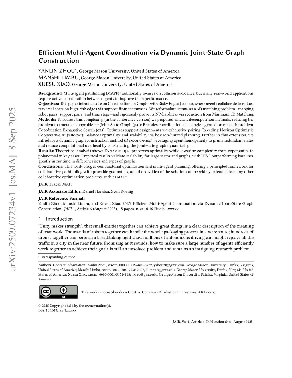 Multi-agent pathfinding (MAPF) traditionally focuses on collision avoidance, but many real-world applications require active coordination between agents to improve team performance. This paper introduces Team Coordination on Graphs with Risky Edges (TCGRE), where agents collaborate to reduce traversal costs on high-risk edges via support from teammates. We reformulate TCGRE as a 3D matching problem-mapping robot pairs, support pairs, and time steps-and rigorously prove its NP-hardness via reduction from Minimum 3D Matching. To address this complexity, (in the conference version) we proposed efficient decomposition methods, reducing the problem to tractable subproblems: Joint-State Graph (JSG): Encodes coordination as a single-agent shortest-path problem. Coordination-Exhaustive Search (CES): Optimizes support assignments via exhaustive pairing. Receding-Horizon Optimistic Cooperative A* (RHOCA*): Balances optimality and scalability via horizon-limited planning. Further in this extension, we introduce a dynamic graph construction method (Dynamic-HJSG), leveraging agent homogeneity to prune redundant states and reduce computational overhead by constructing the joint-state graph dynamically. Theoretical analysis shows Dynamic-HJSG preserves optimality while lowering complexity from exponential to polynomial in key cases. Empirical results validate scalability for large teams and graphs, with HJSG outperforming baselines greatly in runtime in different sizes and types of graphs. This work bridges combinatorial optimization and multi-agent planning, offering a principled framework for collaborative pathfinding with provable guarantees, and the key idea of the solution can be widely extended to many other collaborative optimization problems, such as MAPF.