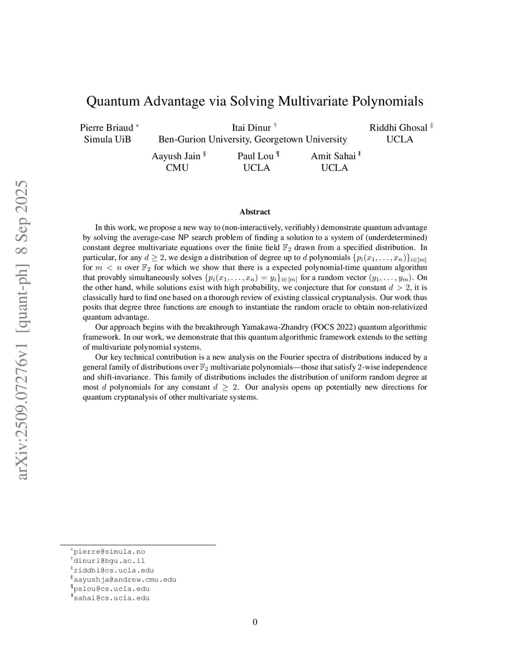 Quantum Advantage via Solving Multivariate Polynomials