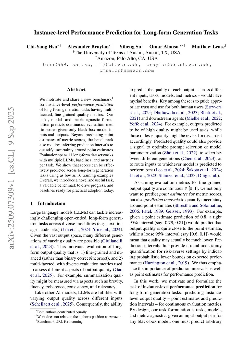 PIE: Performance Interval Estimation for Free-Form Generation Tasks