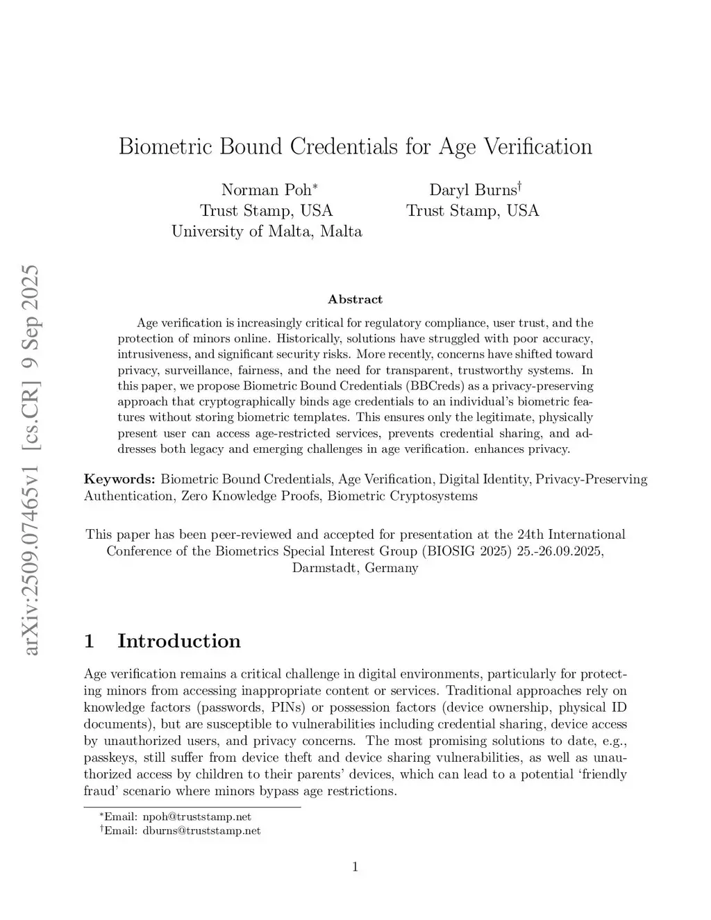 Age verification is increasingly critical for regulatory compliance, user trust, and the protection of minors online. Historically, solutions have struggled with poor accuracy, intrusiveness, and significant security risks. More recently, concerns have shifted toward privacy, surveillance, fairness, and the need for transparent, trustworthy systems. In this paper, we propose Biometric Bound Credentials (BBCreds) as a privacy-preserving approach that cryptographically binds age credentials to an individual's biometric features without storing biometric templates. This ensures only the legitimate, physically present user can access age-restricted services, prevents credential sharing, and addresses both legacy and emerging challenges in age verification. enhances privacy.