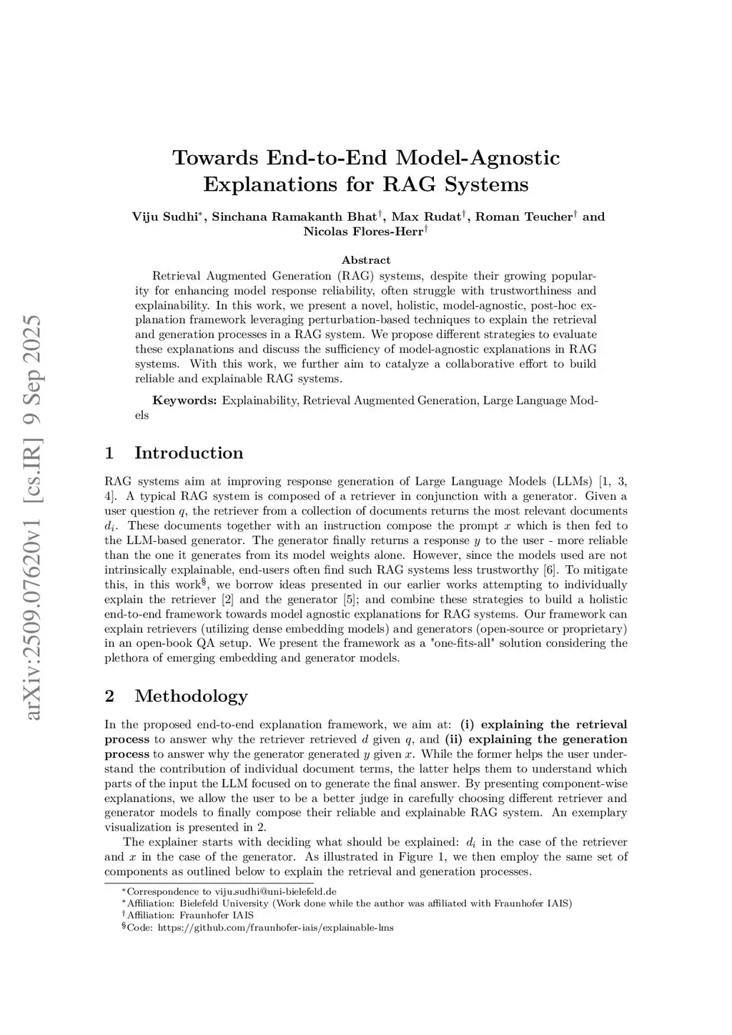 Retrieval Augmented Generation (RAG) systems, despite their growing popularity for enhancing model response reliability, often struggle with trustworthiness and explainability. In this work, we present a novel, holistic, model-agnostic, post-hoc explanation framework leveraging perturbation-based techniques to explain the retrieval and generation processes in a RAG system. We propose different strategies to evaluate these explanations and discuss the sufficiency of model-agnostic explanations in RAG systems. With this work, we further aim to catalyze a collaborative effort to build reliable and explainable RAG systems.