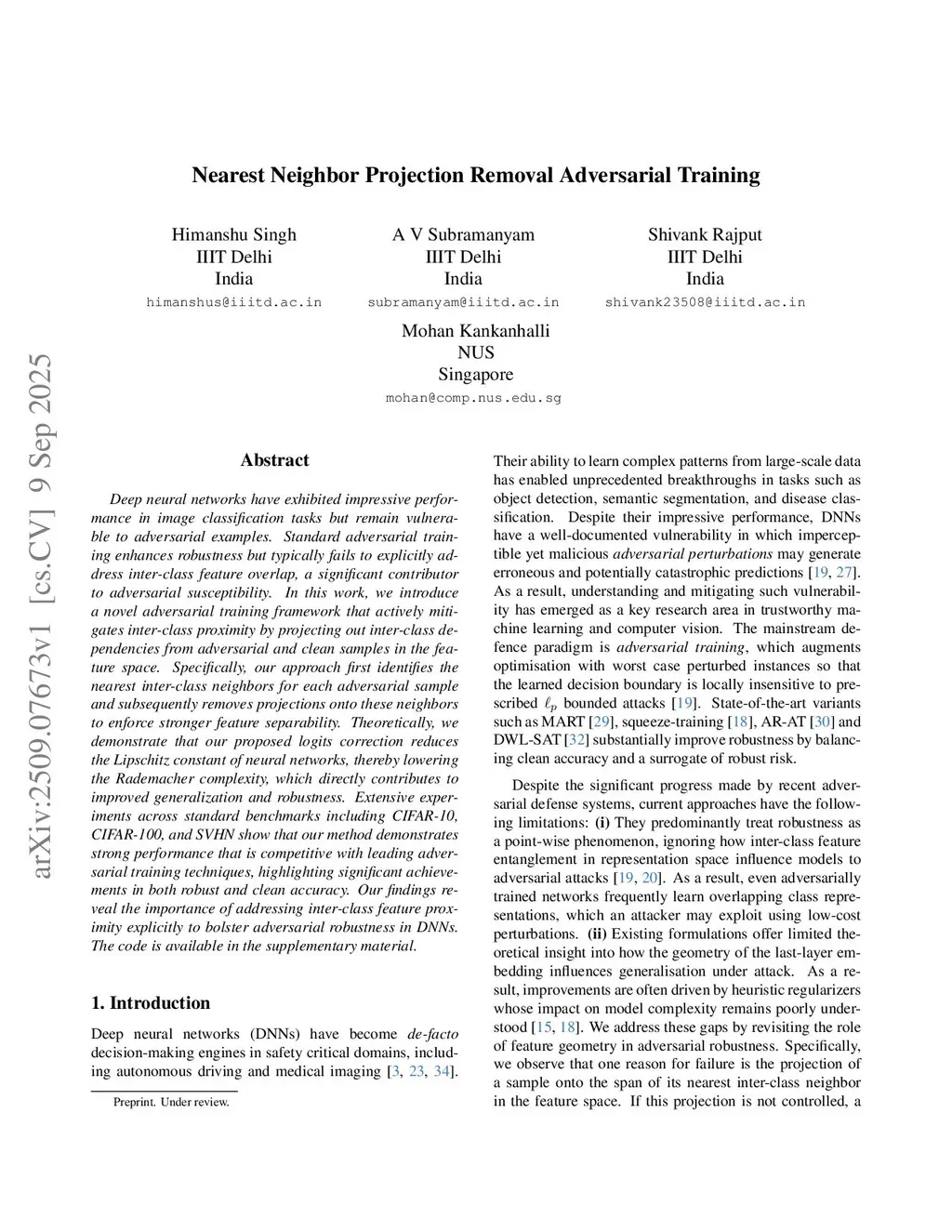 Nearest Neighbor Projection Removal Adversarial Training