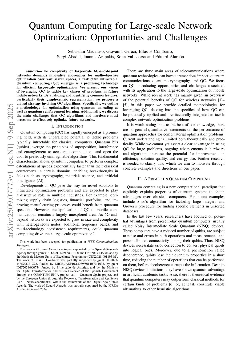 The complexity of large-scale 6G-and-beyond networks demands innovative approaches for multi-objective optimization over vast search spaces, a task often intractable. Quantum computing (QC) emerges as a promising technology for efficient large-scale optimization. We present our vision of leveraging QC to tackle key classes of problems in future mobile networks. By analyzing and identifying common features, particularly their graph-centric representation, we propose a unified strategy involving QC algorithms. Specifically, we outline a methodology for optimization using quantum annealing as well as quantum reinforcement learning. Additionally, we discuss the main challenges that QC algorithms and hardware must overcome to effectively optimize future networks.