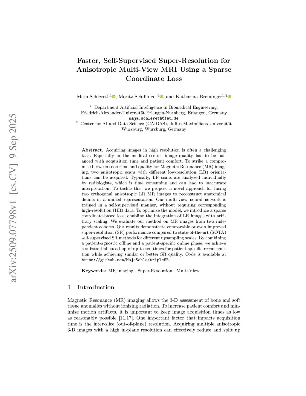 Faster, Self-Supervised Super-Resolution for Anisotropic Multi-View MRI Using a Sparse Coordinate Loss