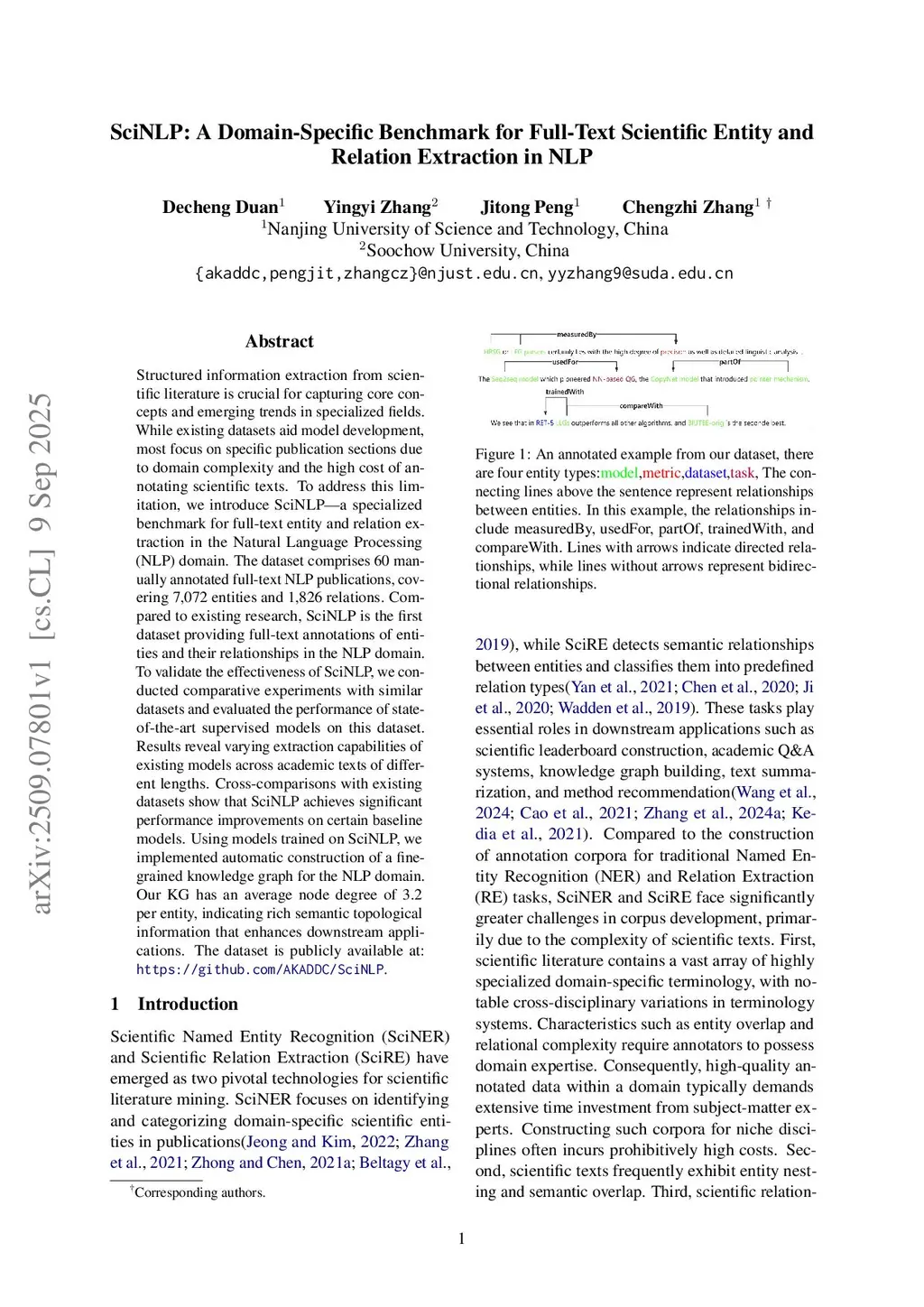 SciNLP: A Domain-Specific Benchmark for Full-Text Scientific Entity and Relation Extraction in NLP