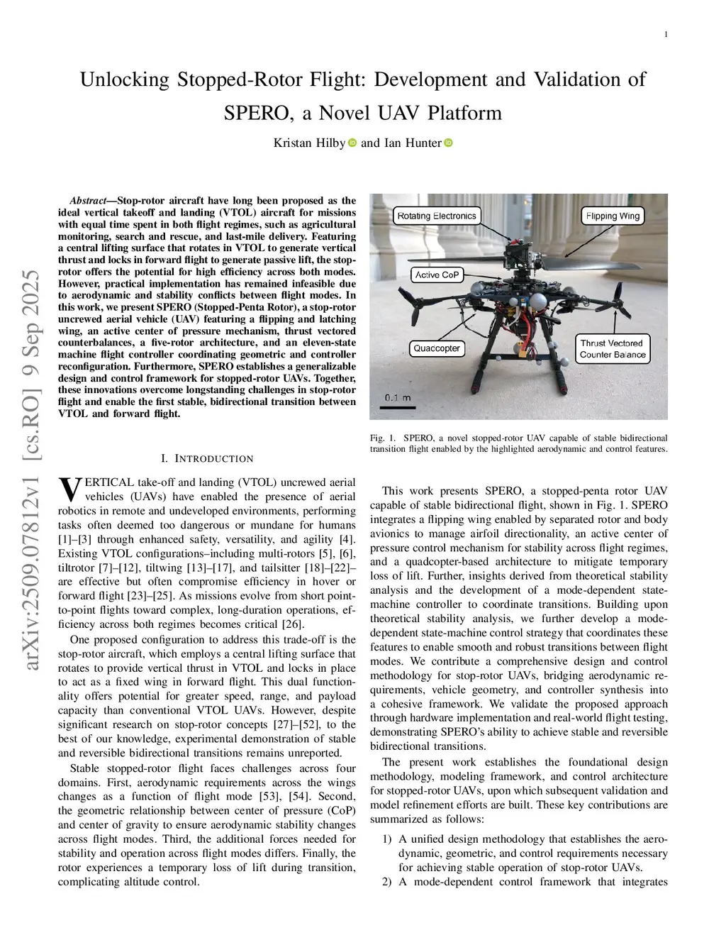 Unlocking Stopped-Rotor Flight: Development and Validation of SPERO, a Novel UAV Platform