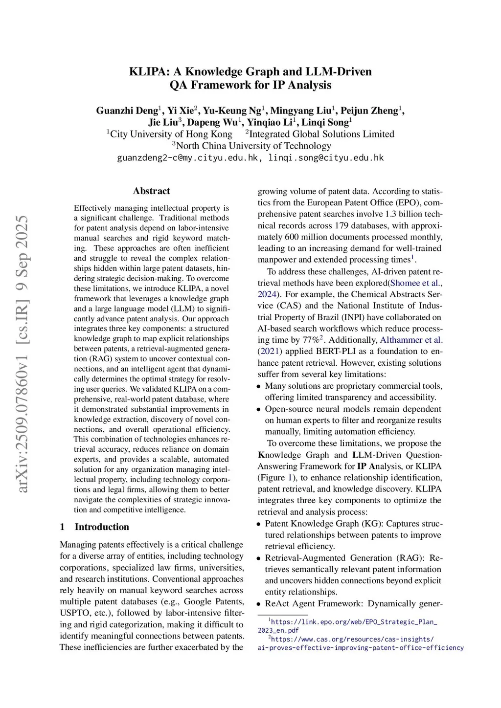 KLIPA: A Knowledge Graph and LLM-Driven QA Framework for IP Analysis