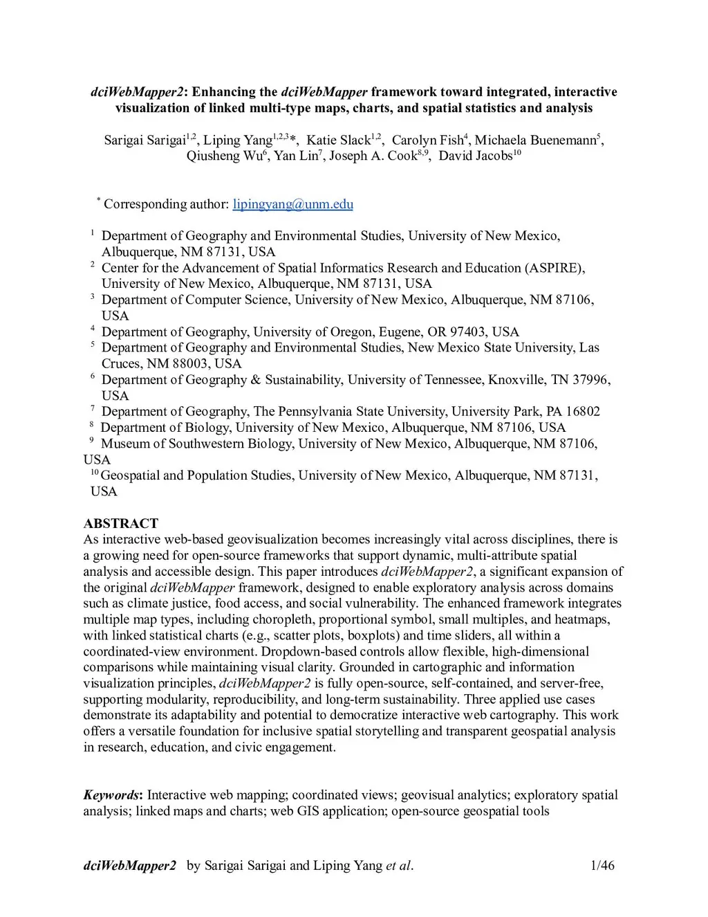 dciWebMapper2: Enhancing the dciWebMapper framework toward integrated, interactive visualization of linked multi-type maps, charts, and spatial statistics and analysis