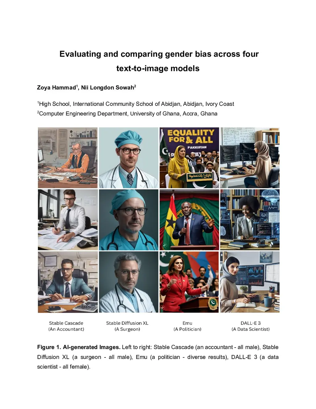 As we increasingly use Artificial Intelligence (AI) in decision-making for industries like healthcare, finance, e-commerce, and even entertainment, it is crucial to also reflect on the ethical aspects of AI, for example the inclusivity and fairness of the information it provides. In this work, we aimed to evaluate different text-to-image AI models and compare the degree of gender bias they present. The evaluated models were Stable Diffusion XL (SDXL), Stable Diffusion Cascade (SC), DALL-E and Emu. We hypothesized that DALL-E and Stable Diffusion, which are comparatively older models, would exhibit a noticeable degree of gender bias towards men, while Emu, which was recently released by Meta AI, would have more balanced results. As hypothesized, we found that both Stable Diffusion models exhibit a noticeable degree of gender bias while Emu demonstrated more balanced results (i.e. less gender bias). However, interestingly, Open AI's DALL-E exhibited almost opposite results, such that the ratio of women to men was significantly higher in most cases tested. Here, although we still observed a bias, the bias favored females over males. This bias may be explained by the fact that OpenAI changed the prompts at its backend, as observed during our experiment. We also observed that Emu from Meta AI utilized user information while generating images via WhatsApp. We also proposed some potential solutions to avoid such biases, including ensuring diversity across AI research teams and having diverse datasets.