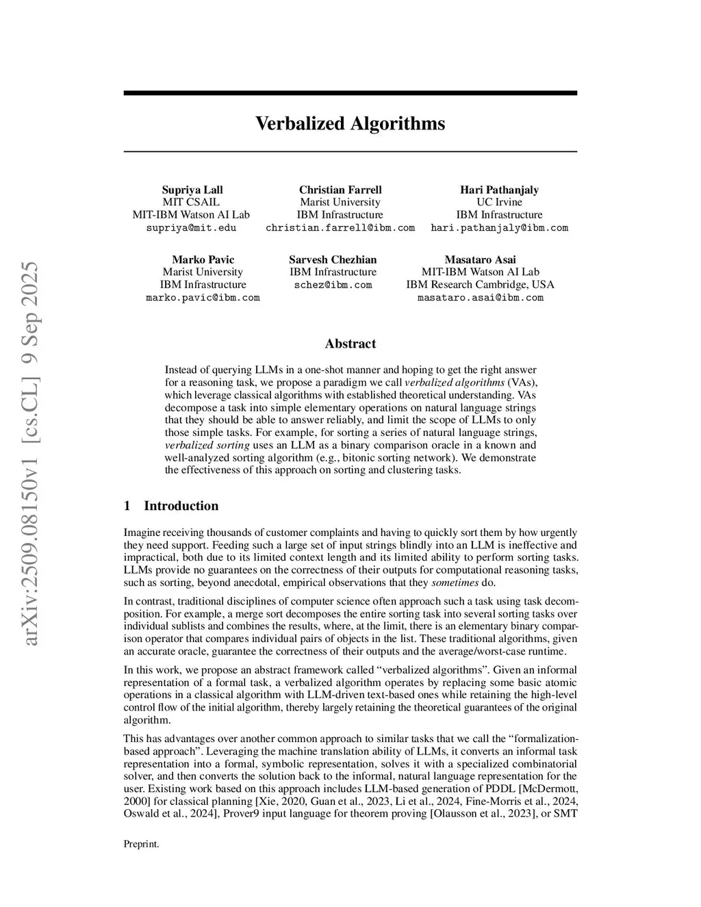 Instead of querying LLMs in a one-shot manner and hoping to get the right answer for a reasoning task, we propose a paradigm we call \emph{verbalized algorithms} (VAs), which leverage classical algorithms with established theoretical understanding. VAs decompose a task into simple elementary operations on natural language strings that they should be able to answer reliably, and limit the scope of LLMs to only those simple tasks. For example, for sorting a series of natural language strings, \emph{verbalized sorting} uses an LLM as a binary comparison oracle in a known and well-analyzed sorting algorithm (e.g., bitonic sorting network). We demonstrate the effectiveness of this approach on sorting and clustering tasks.