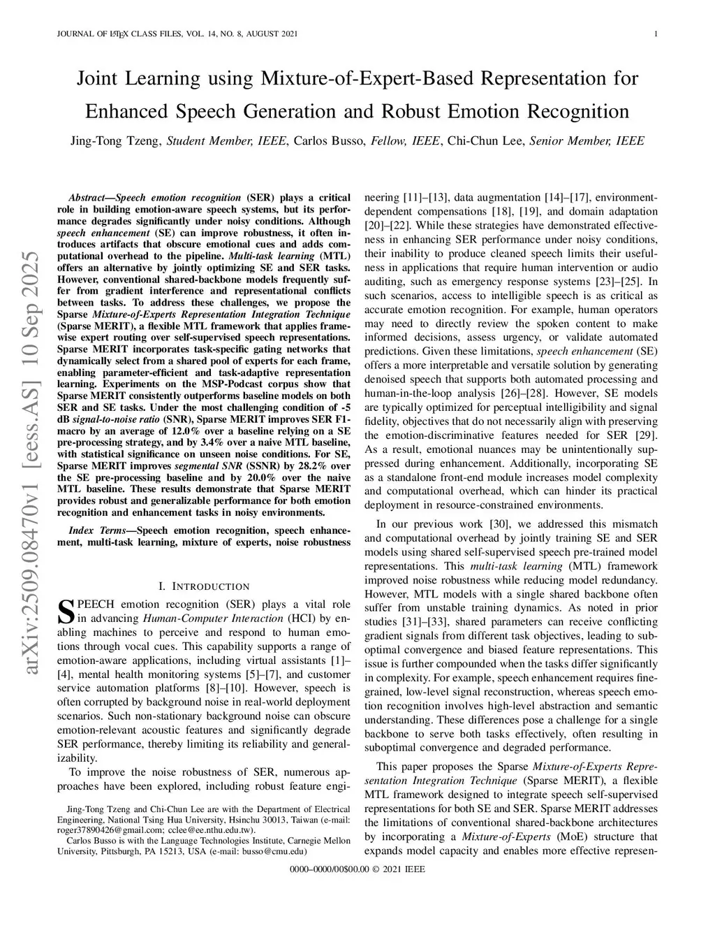 Joint Learning using Mixture-of-Expert-Based Representation for Enhanced Speech Generation and Robust Emotion Recognition