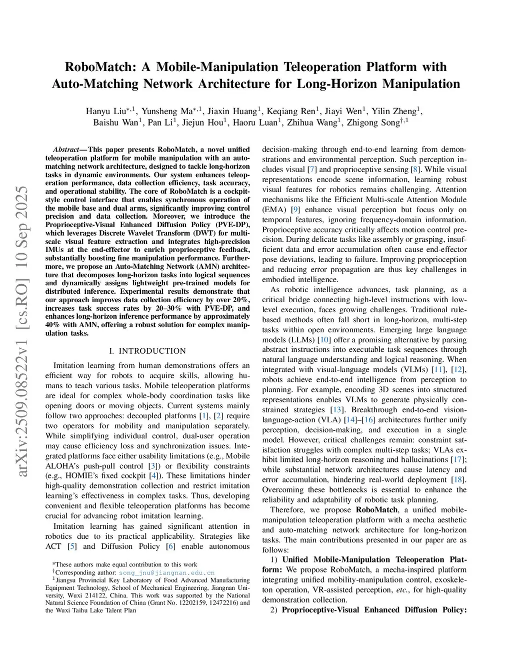 RoboMatch: A Unified Mobile-Manipulation Teleoperation Platform with Auto-Matching Network Architecture for Long-Horizon Tasks
