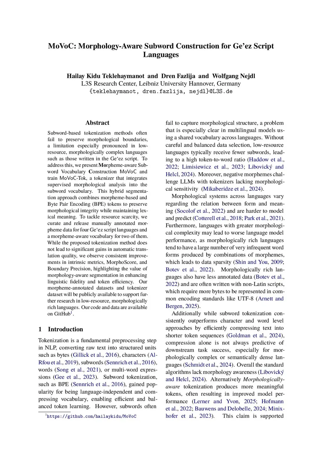 MoVoC: Morphology-Aware Subword Construction for Geez Script Languages