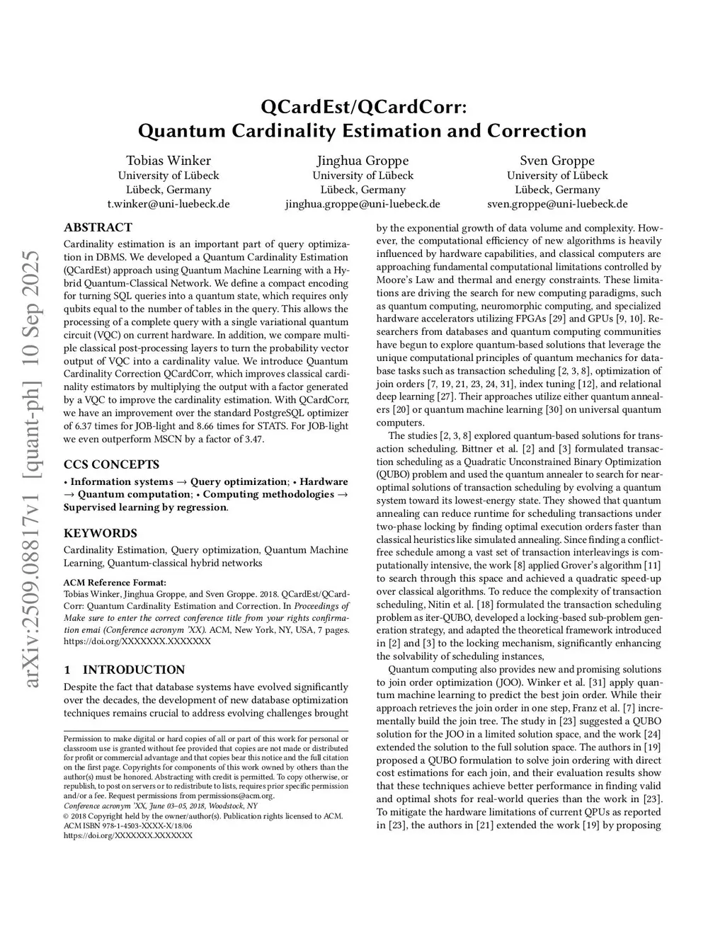 QCardEst/QCardCorr: Quantum Cardinality Estimation and Correction