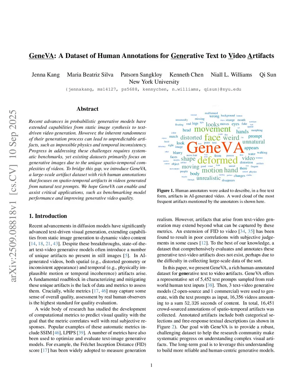 GeneVA: A Dataset of Human Annotations for Generative Text to Video Artifacts